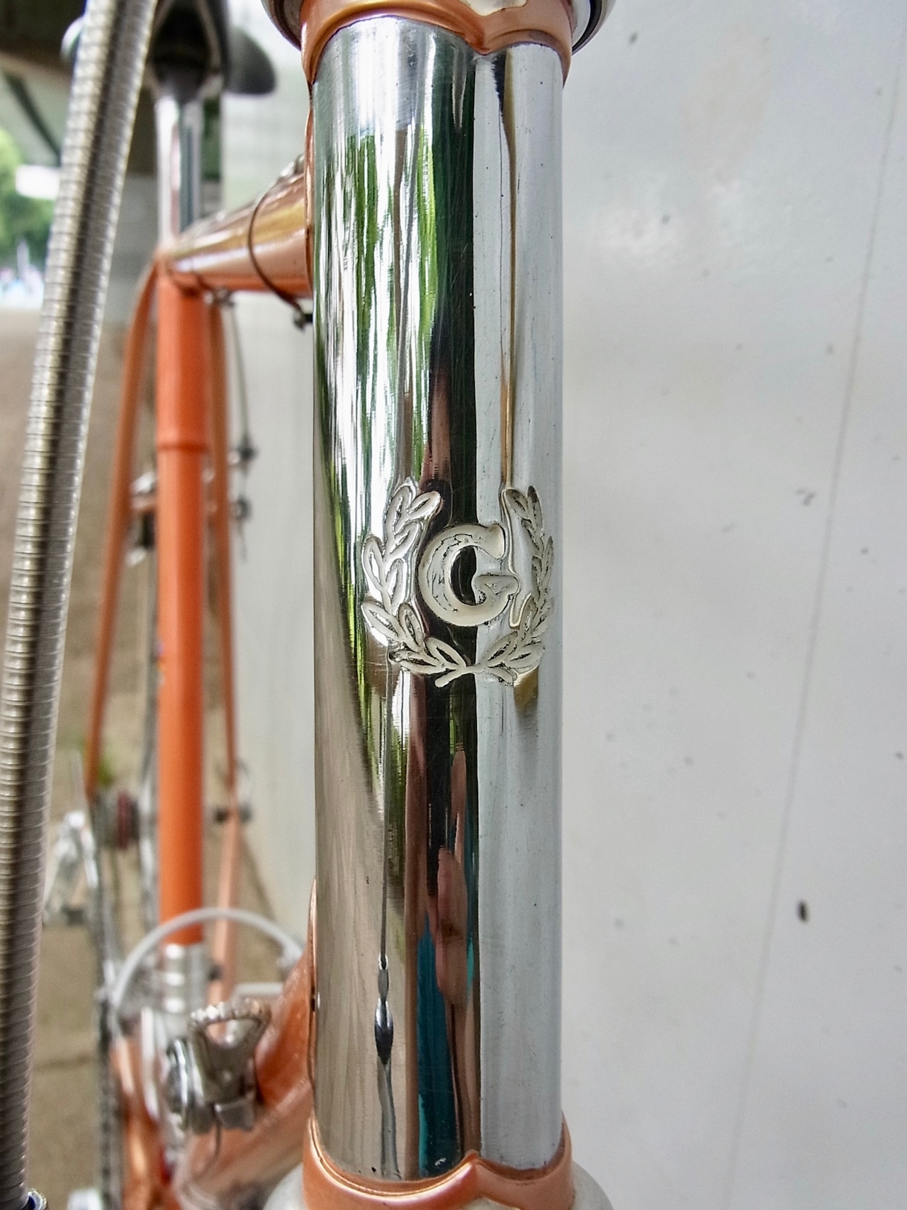 この車両も軽量なのは当たり前ですが、各パイプの溶接の美しさ、ヘッドチューブ、フォーク肩、リアステー集合部にはシンボルの”G”また”Grandis”の名が刻み込まれております。