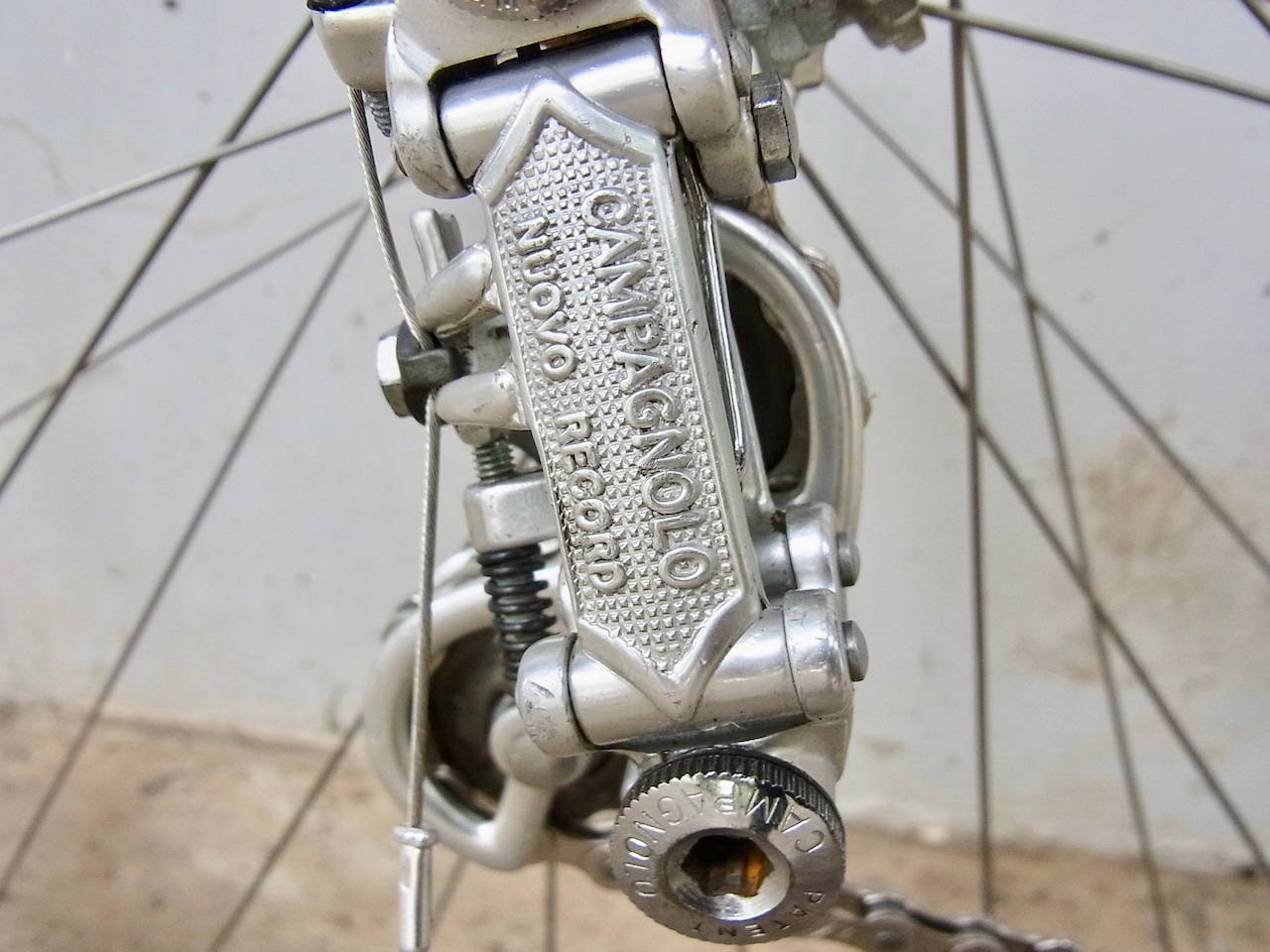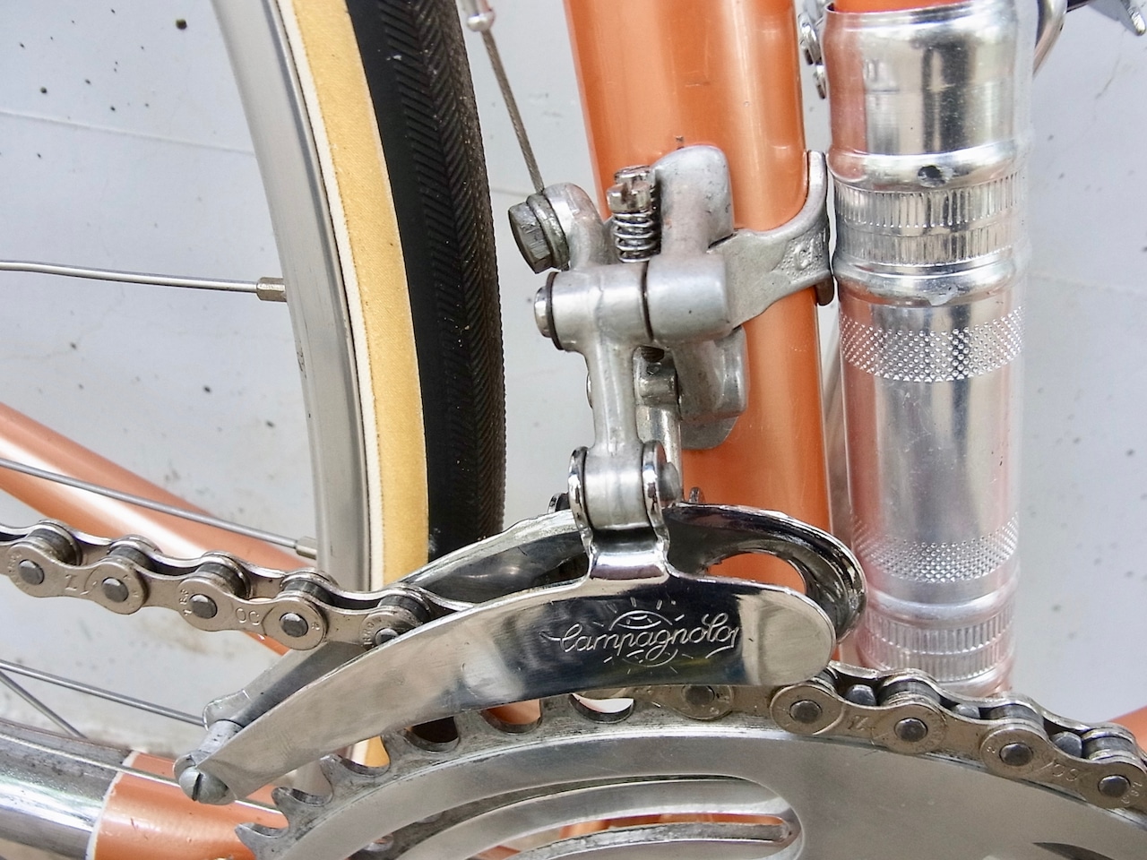 前後変速機、ブレーキセット、BB,チェーンホイール、前後ハブはカンパニョーロ製。
