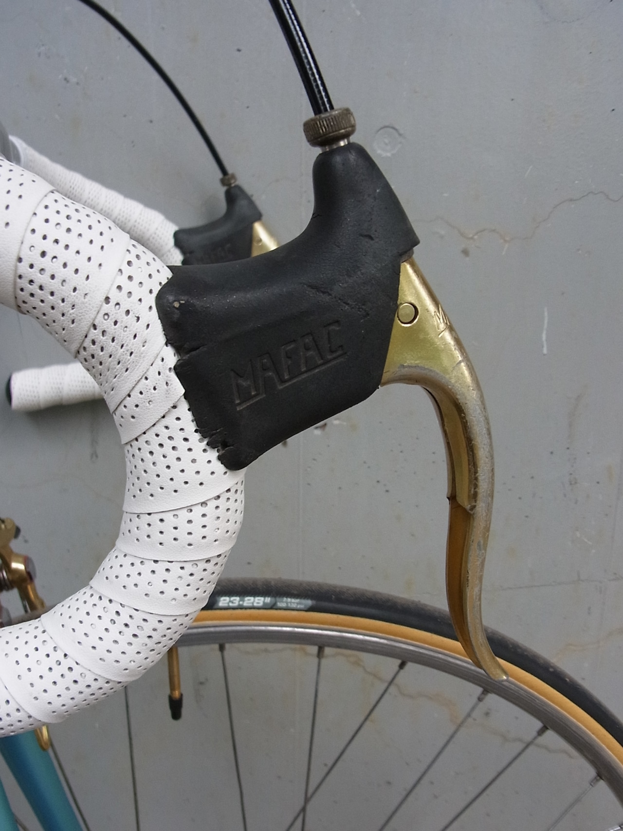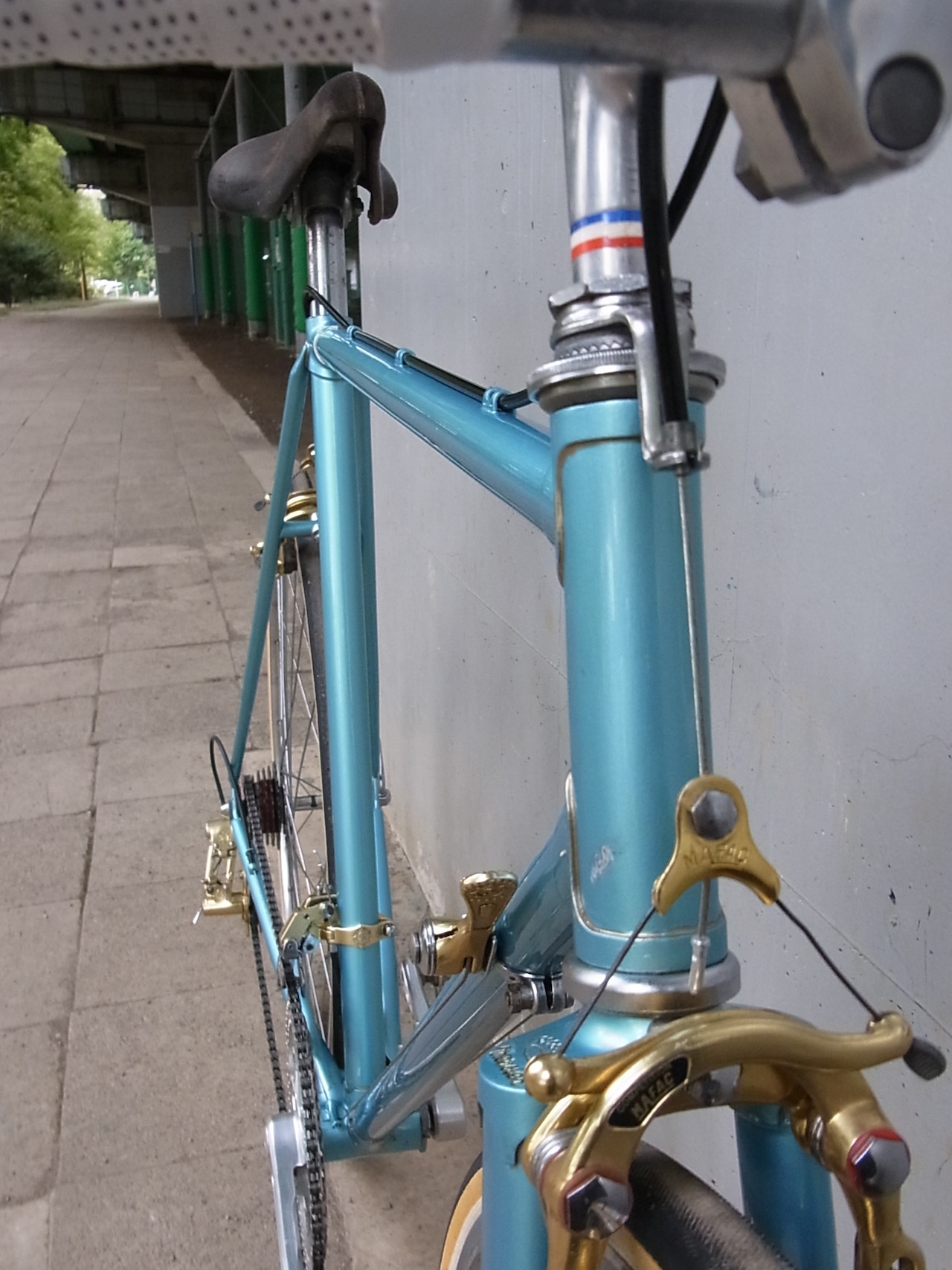 各パーツもハイグレードな構成ですよ!前後ディレーラーと変速レバーはSimplex SLJ, ブレーキセットはMafac Competition,クランクはStronglight105、前後ハブはCampagnolo Record、リムはSuperChampionといった具合です!