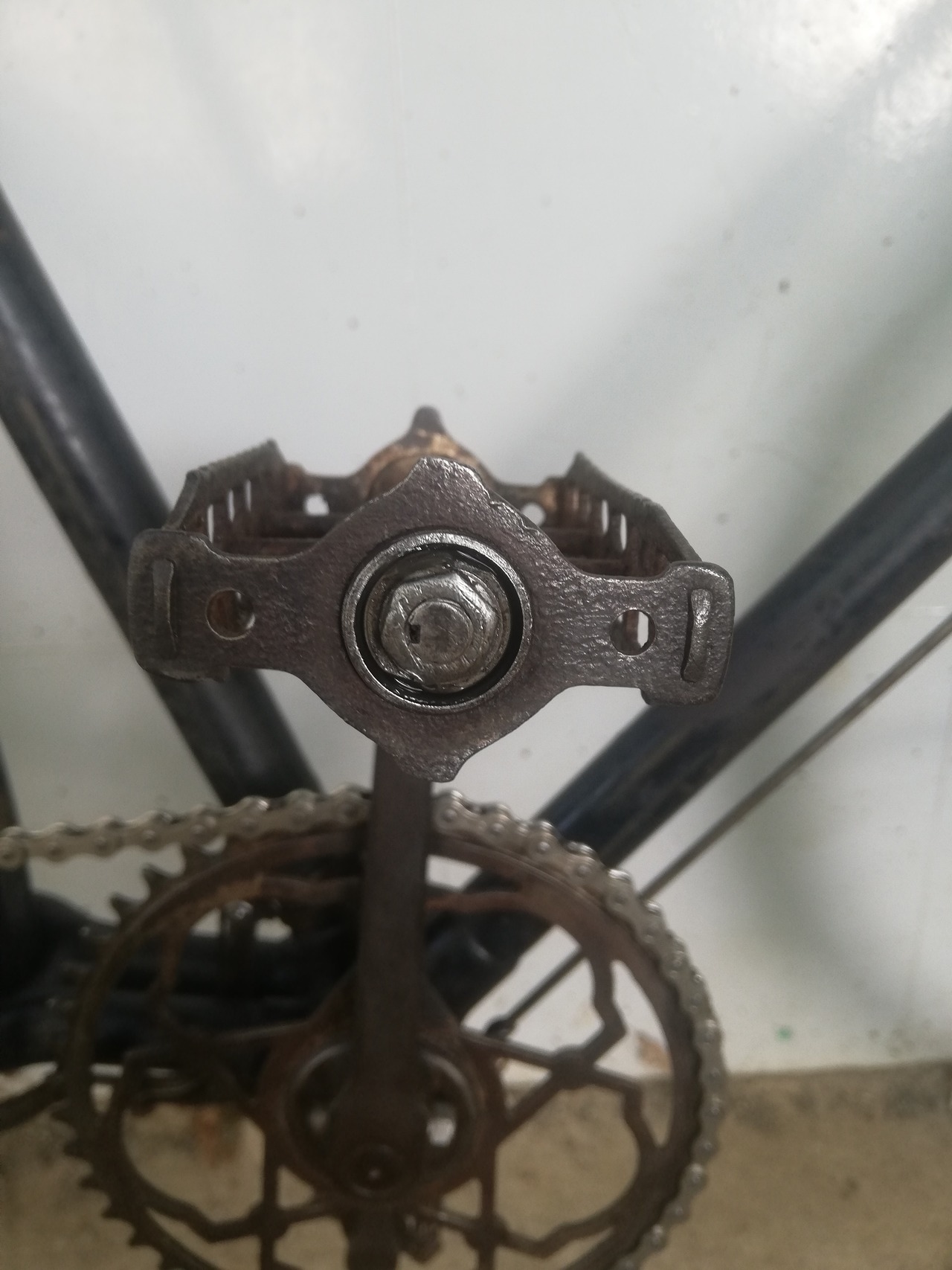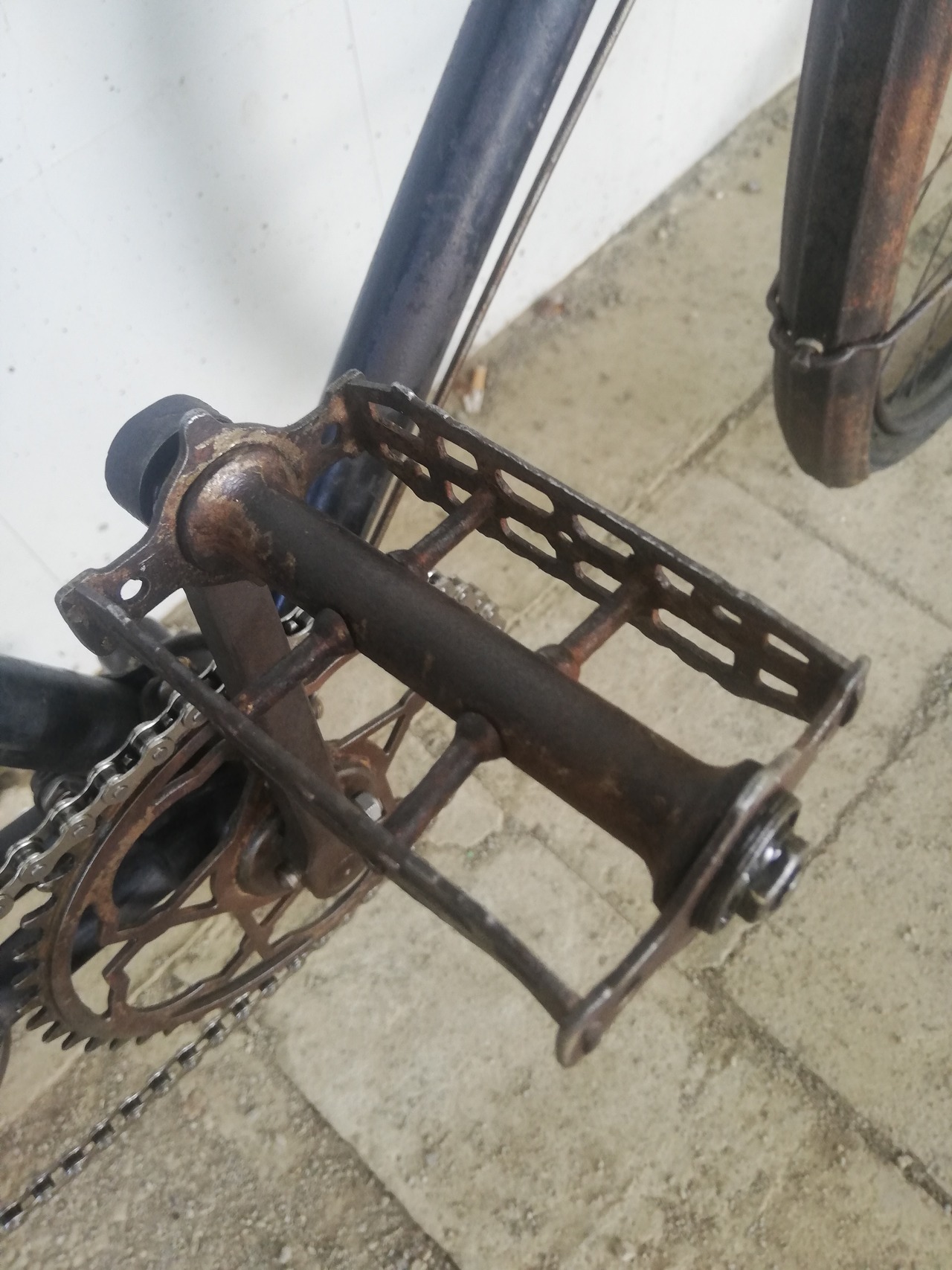 前フェンダーの一部に欠けがあります。右ペダルの軸に歪みあり。