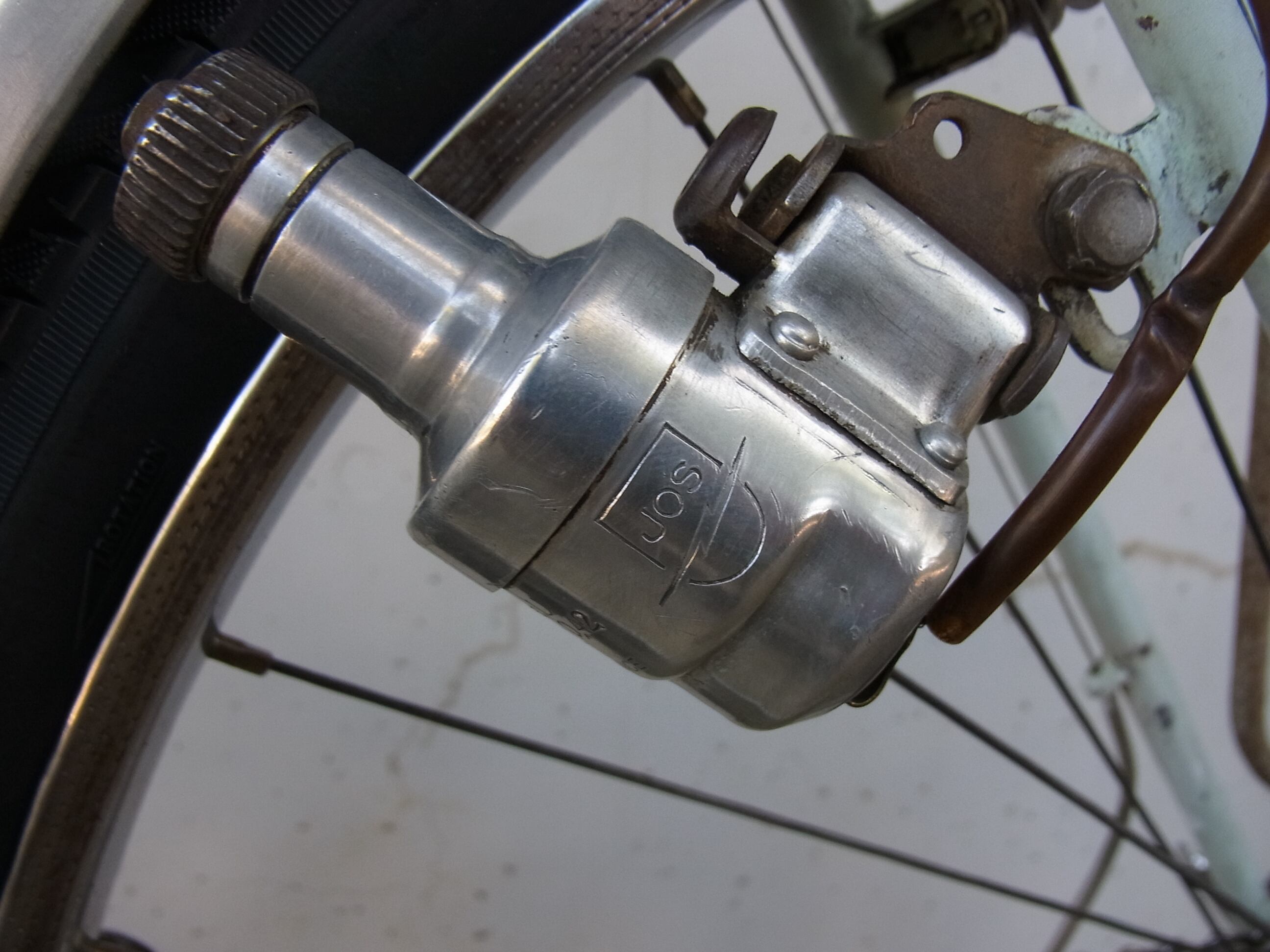 前後ライトも動作します。今のLEDライトとは違うぼんやりした灯りがまた素敵なんです。