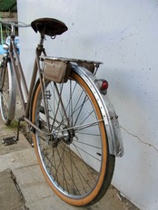 こちらの自転車もポリシー通り各パイプの溶接はとても丁寧にされています。メインチューブは通常使用されるパイプより強度、重量が優れたDurifort社製のものが使われており申し分ないです。製造よりおおよそ70年経ちますが、塗装の経年も良い感です。色は元々紫に近かったのではと思いますが今ではあずき色と言った感じになります。凹み、曲がりはありません。