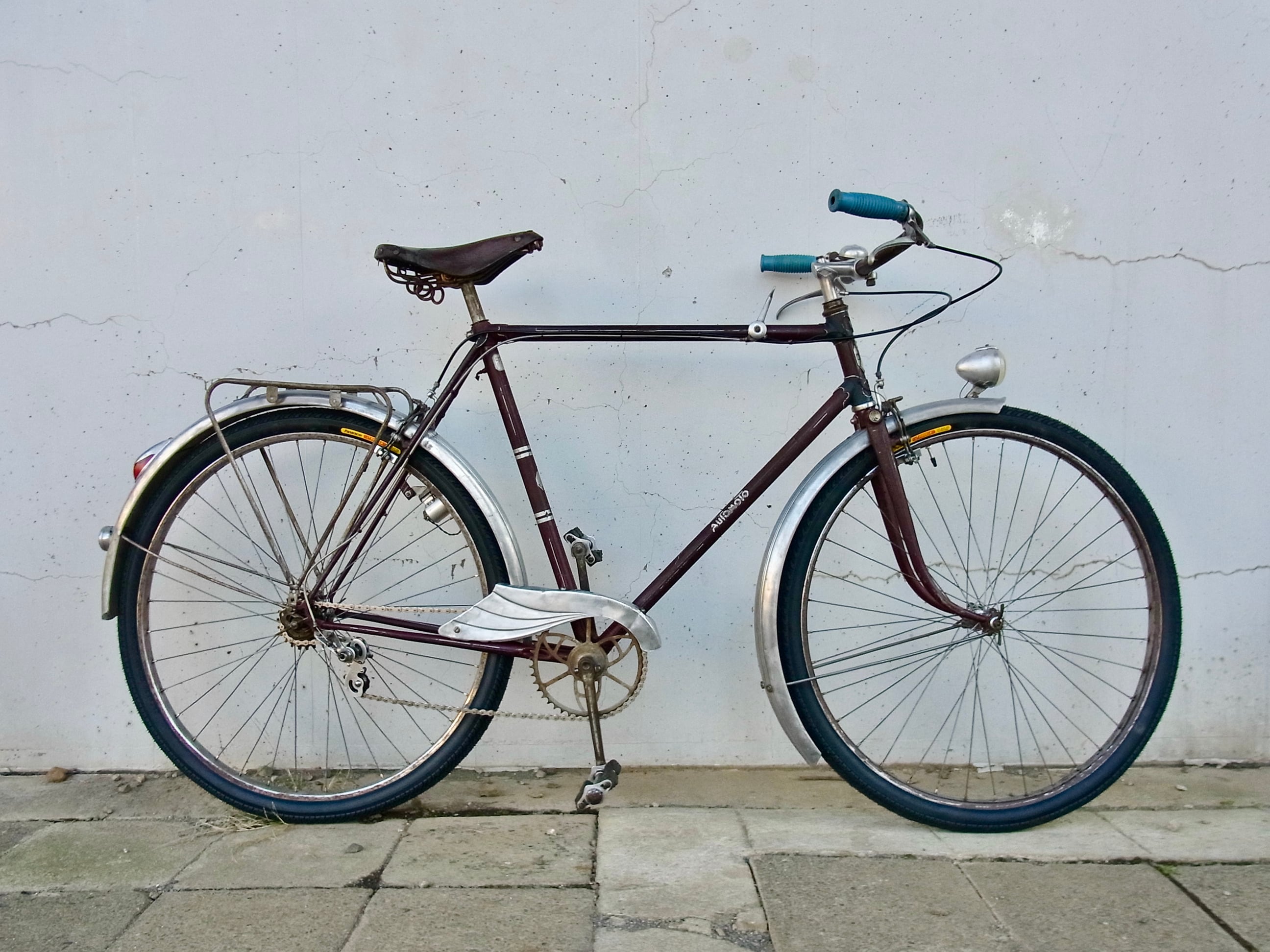 製造より70年ほど経過しているため塗装の劣化は見られますが当時の雰囲気は失わず良いビンテージ感を纏っております。色もワインレッドのような色味です。ワインも熟成させると深みが増すように自転車も時間の経過で深みが増すようですね。
