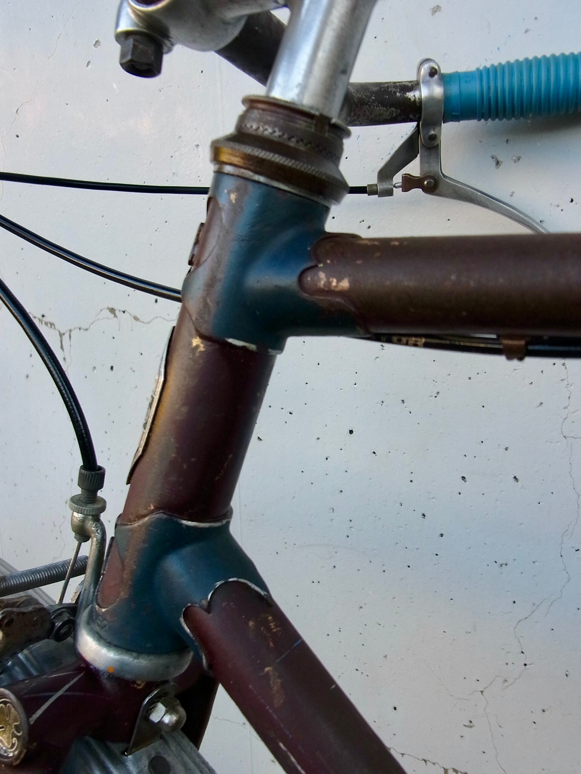 フランス国内のみならず海外にも輸出されたブランドの品質は高く、こちらの車両もパイプの継ぎ手部分はクローバーのデザインになっていたり、ブランドのマークも入っており、シティーサイクル用としては凝った作りになっております。