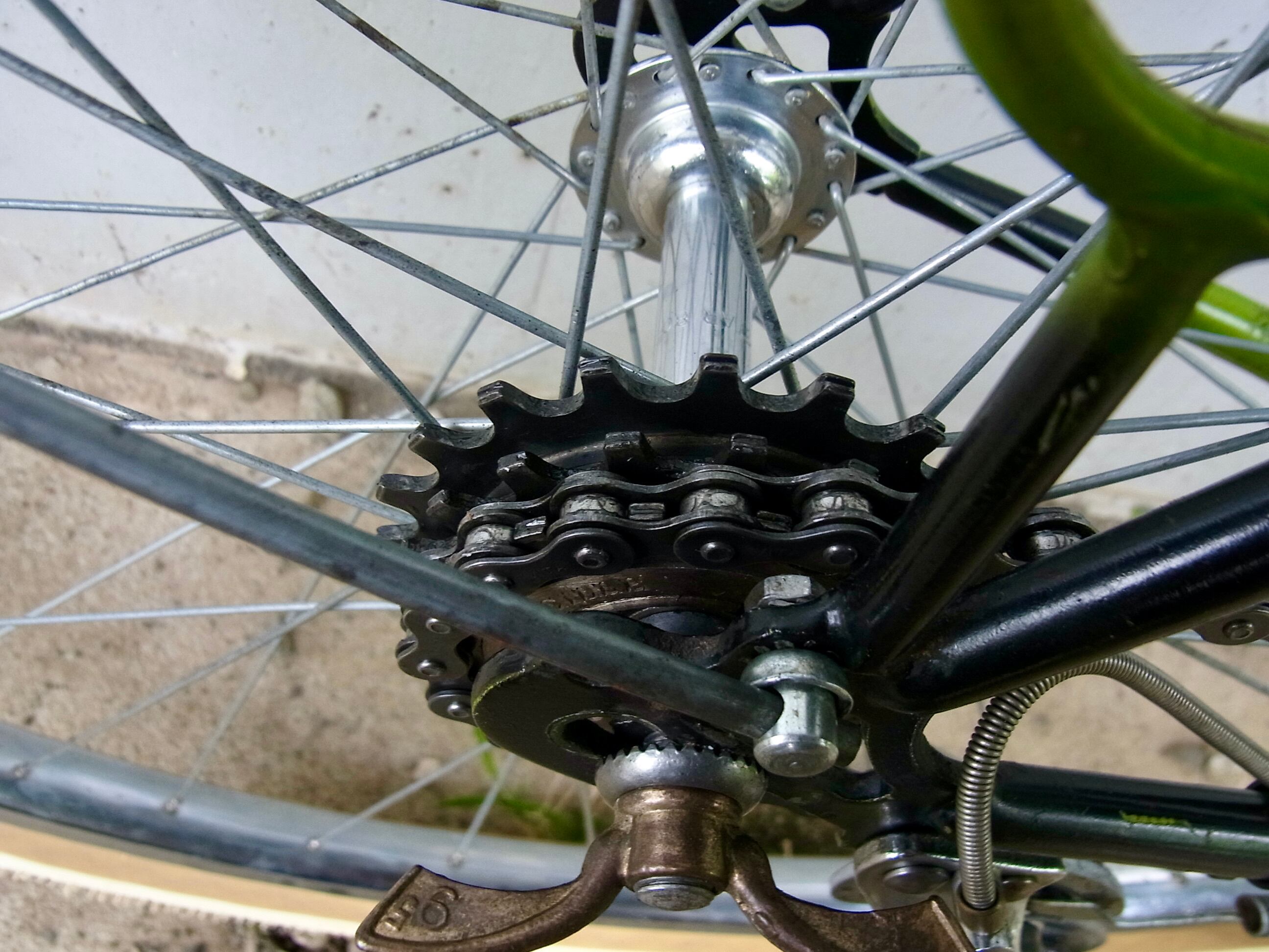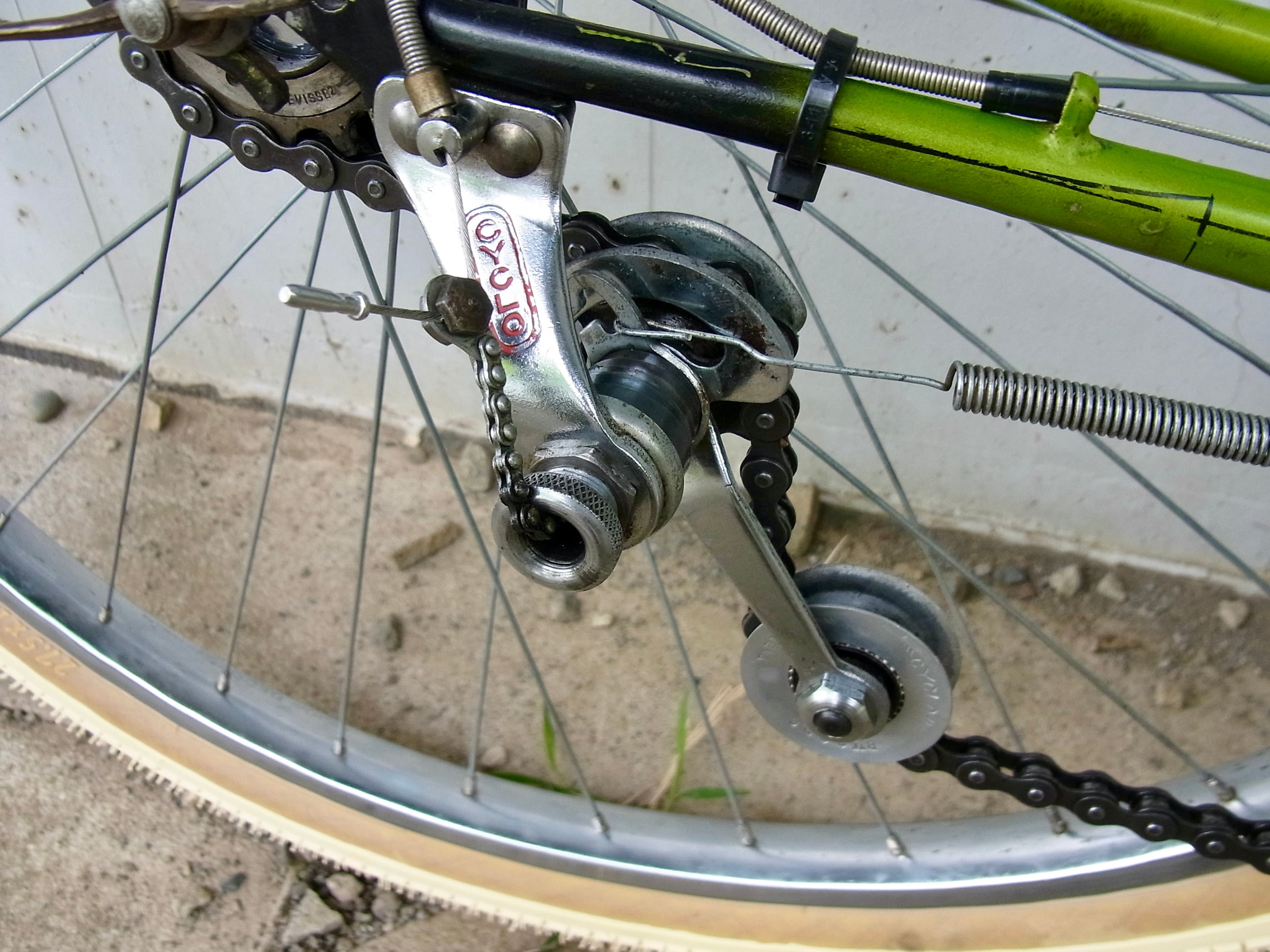 ギアはフロント1枚、リア3速です。Cyclo製の変速機、レバー。(ただしレバーのスペーサはオリジナルのものではありません)