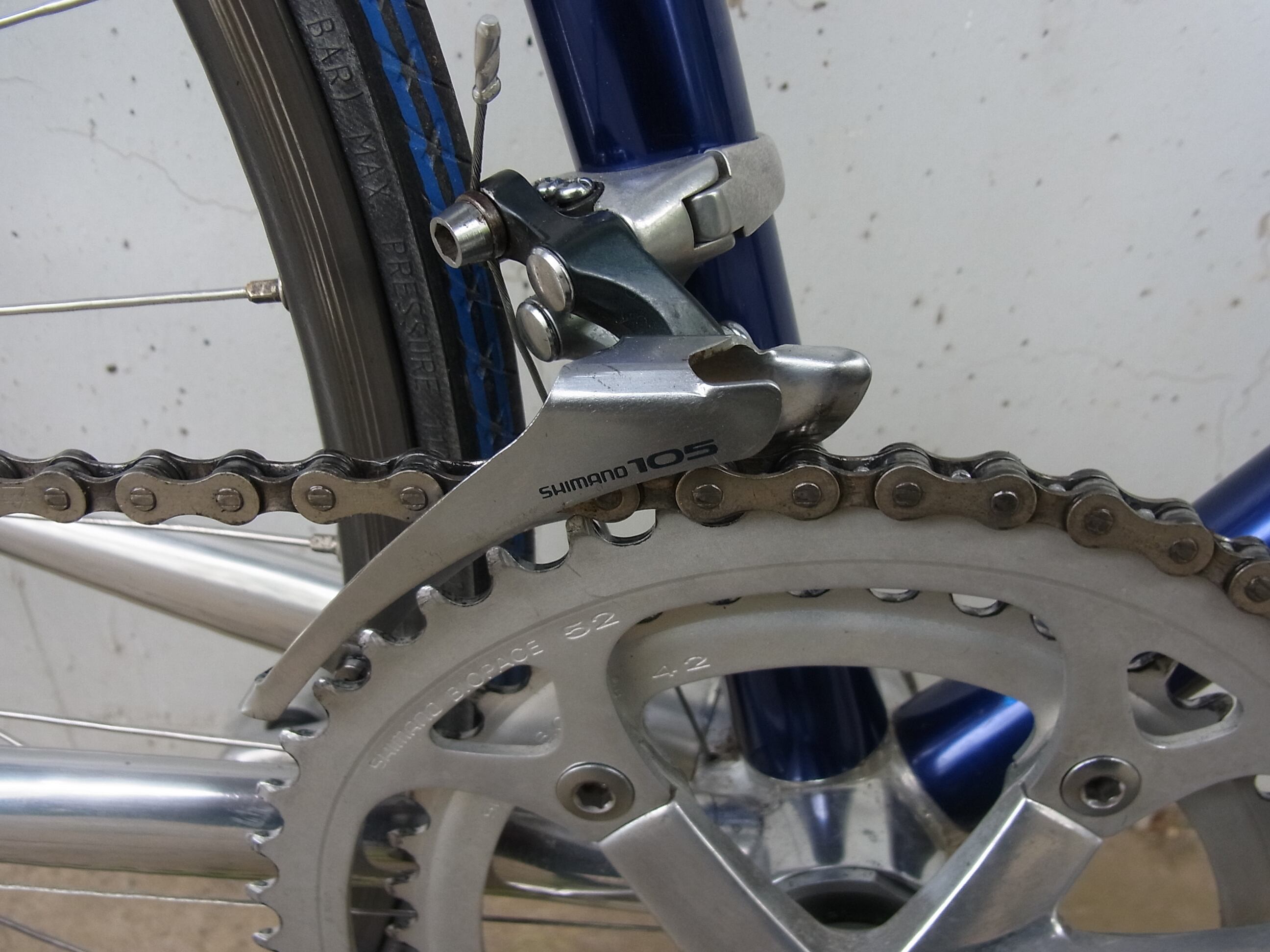 アルミは鉄より軽いというメリットがあるが加工に不向き。そんなアルミの溶接技術が確立されていない当時、アルミチューブとアルミ製のラグを接着、圧入して造る画期的な方法で作られています。当時の最新技術だったようで販売価格もフレームだけでウン十万したんだとか。。。