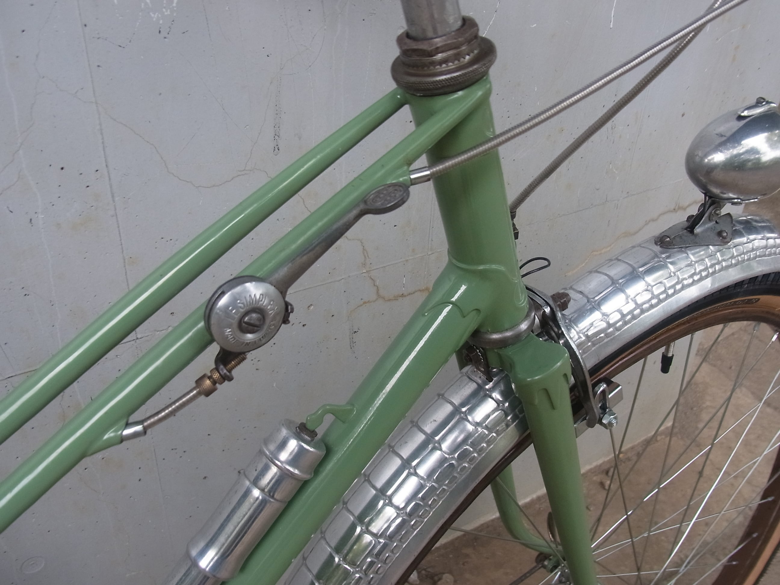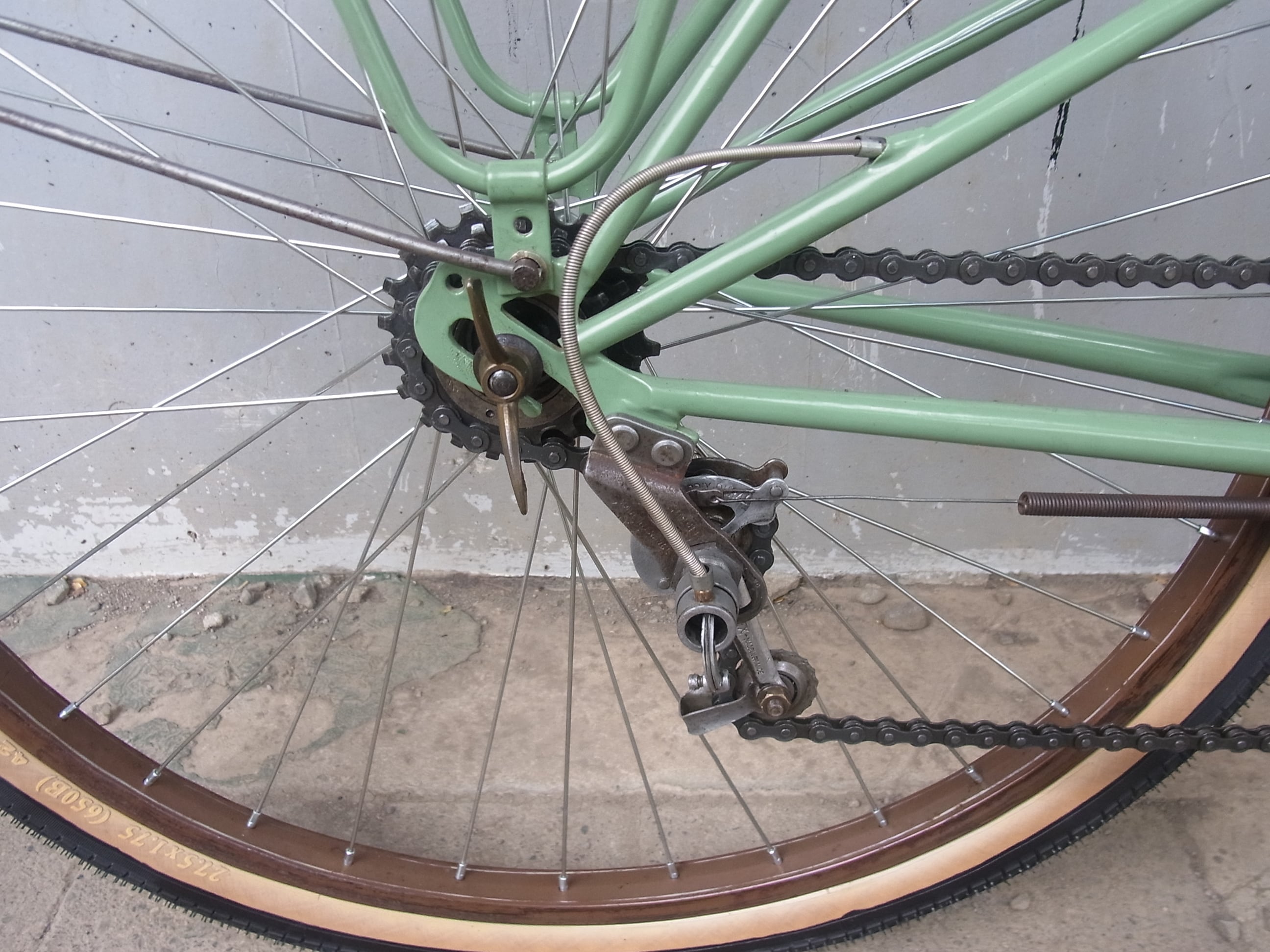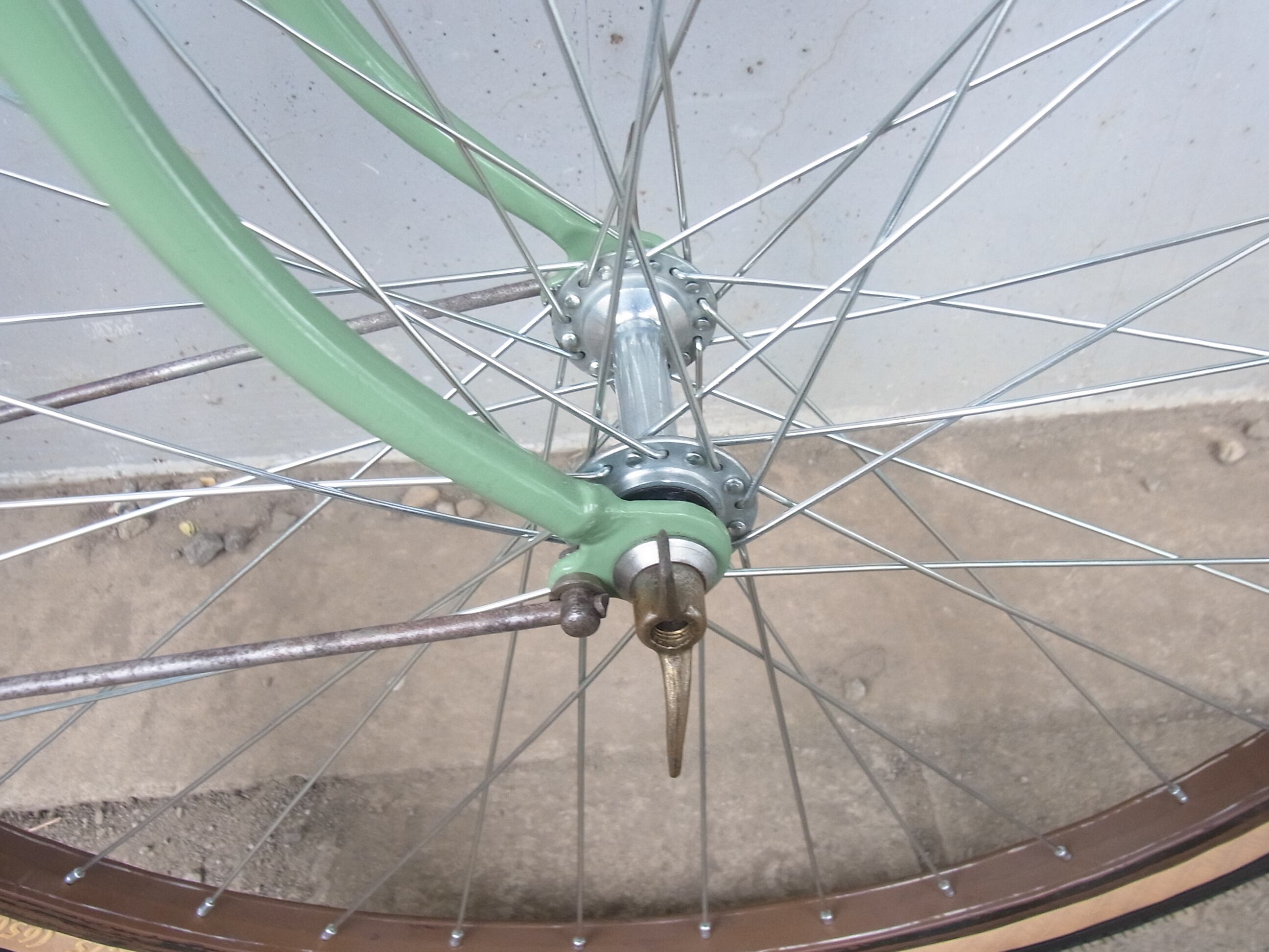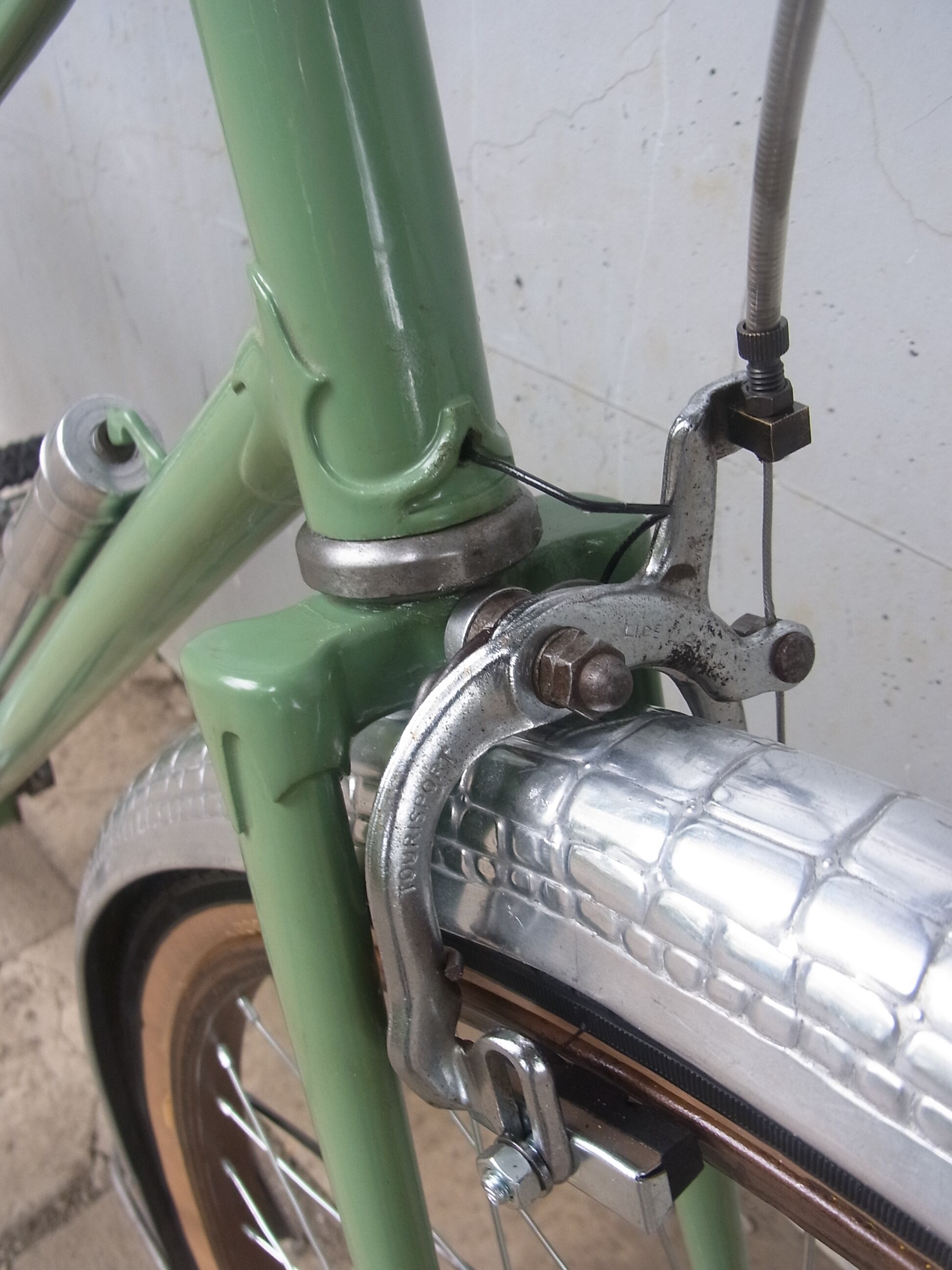 ディレーラーもSimplex社のかなり古いものが付いております。変速性能はガチャガチャ感があるのでお世辞にもスムーズとはいえませんがこれも一つの愛嬌!